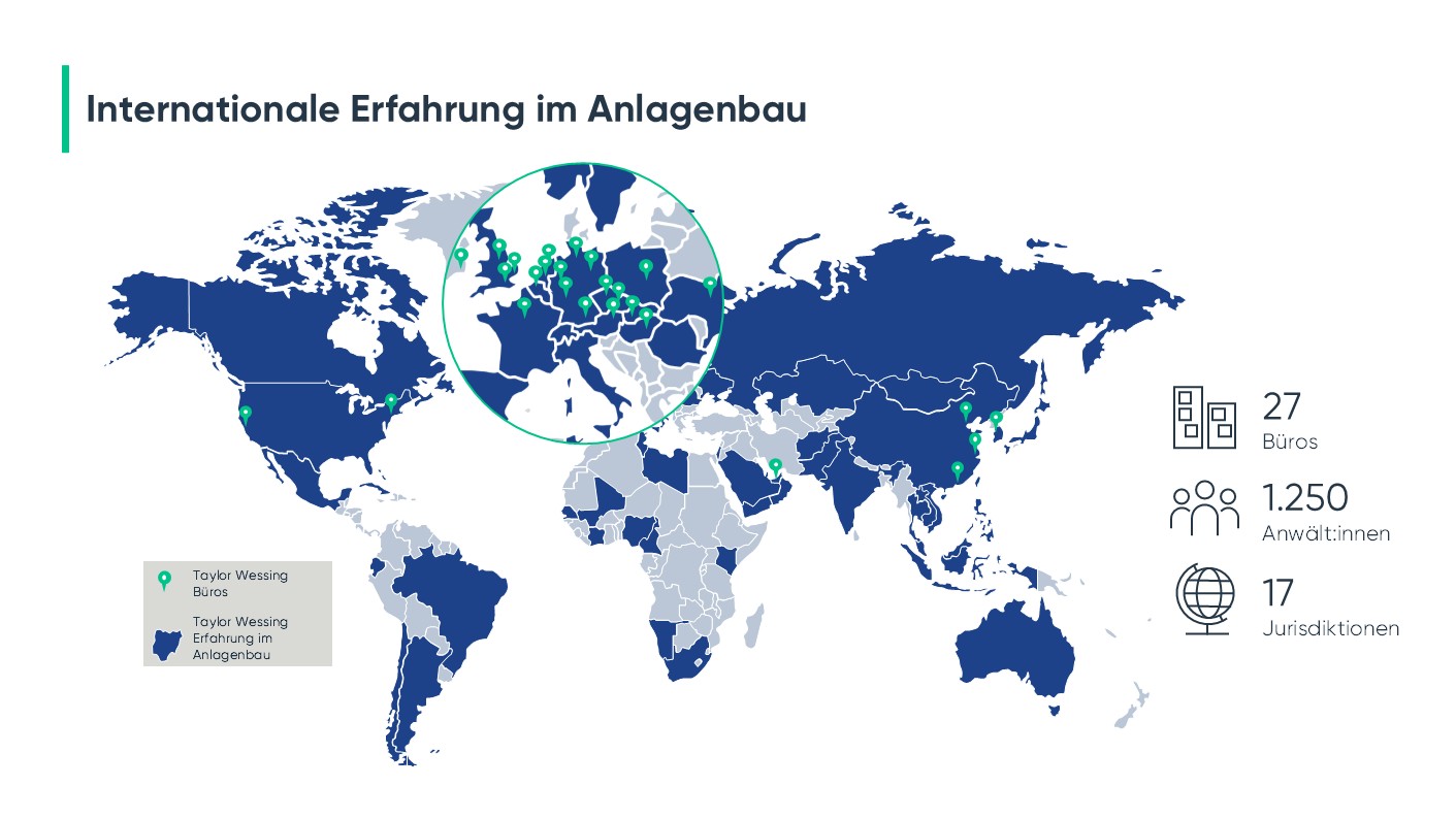 Unser internationales Team berät Mandanten national und global bei komplexen Großprojekten im industriellen Anlagenbau sowie bei Infrastruktur- und technologie-intensiven Projekten.