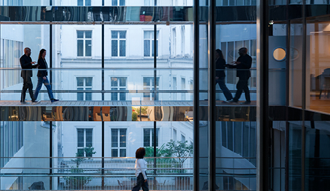 People crossing open space
